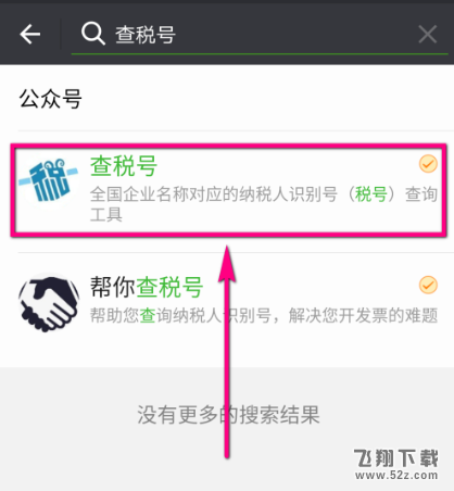 在此页面输入“税检号”,点击【搜索】,点击公众号如图。