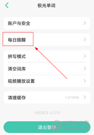 2、在极光Word APP的系统设置界面中,可以看到“每日提醒”功能选项,进入并勾选。