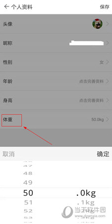 2.然后选择“个人信息”界面中的“体重”栏,记录您的真实体重。如有变动,记得及时更新。