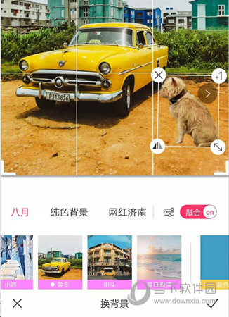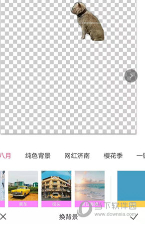 2、进入换背景功能界面,你会看到图片中的人物已经被剪掉了。用户可以选择下面的任何背景模板,或自行导入背景图片。