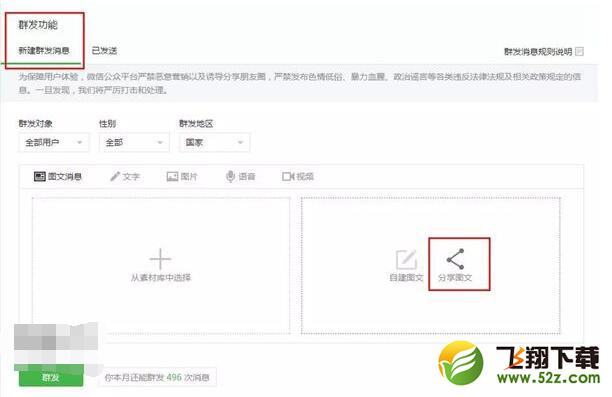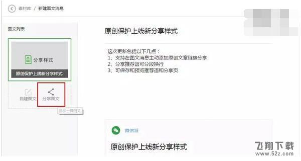 在群发功能中,新建图文消息、编辑图文消息等,可以直接发布原创声明文章链接并主动分享。
