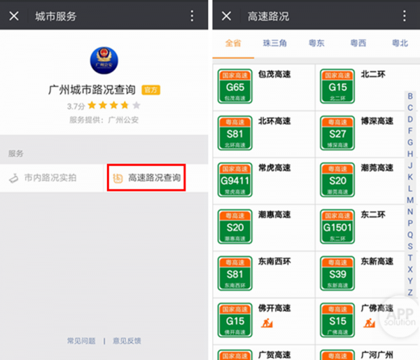 当一些重要节日到来的时候,比如春节、清明节等,全国各地都会出现高速公路拥堵的情况,所以“广州市交通查询”可以帮助一些返乡的车主。但该功能目前仅覆盖珠三角、粤东、粤西、粤北地区的高速公路。