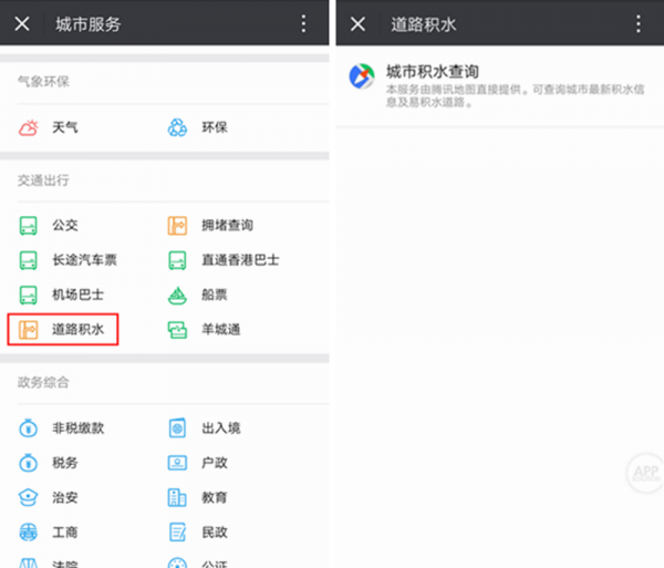 您也可以在“城市服务”中的“道路水浸”中快速找到该功能。