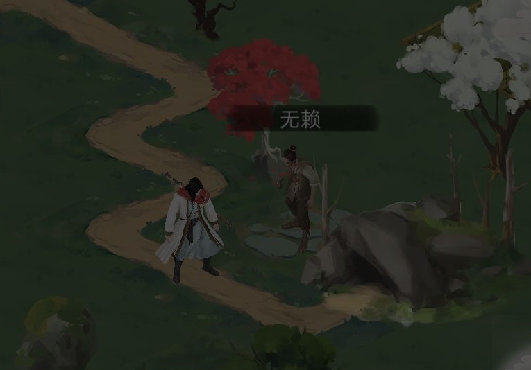 再往左走,就是一片桃花林。里面有一个剑卫。你现在无法击败它。不用担心(等我更好的时候我会和你竞争)。然后继续前进,你会遇到村民和盗贼,他们会教训你。盗贼们将会收到来自村庄传奇的消息。