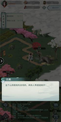 往右边走有人会叫你1000铜币买铁匠铺。果断购买。购买后可以从铁匠铺获得石头。然后往右边走,有一个山洞。旁边有个流氓,不让你进出。可以轻松进入山洞。在山洞里,你会找到小女孩之前丢失的鸡。