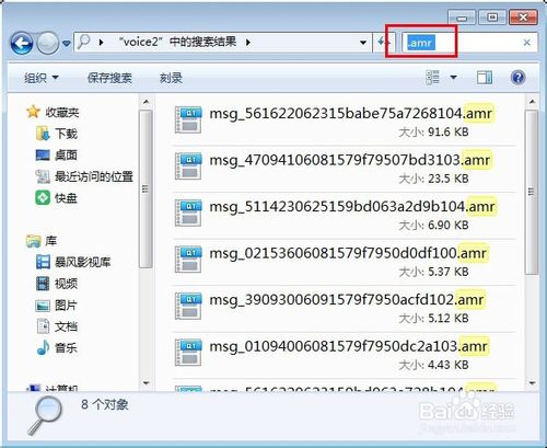 5小贴士:我们进入voice2文件夹后,由于微信语音文件分散在很多小文件夹中,如果一个一个打开会很麻烦。其实我们也可以进入voice2文件夹后直接搜索”。amr & quot要找出所有的微信语音文件(因为所有的微信语音文件都是MSG _ * * * * * * *的格式。amr和语音文件名都包含。AMR,让我们所有的微信语音文件同时显示在一个文件夹里。我们可以用楼月微信语音播放器直接播放,或者按Ctrl+A全选,然后复制粘贴到另一个文件夹。
