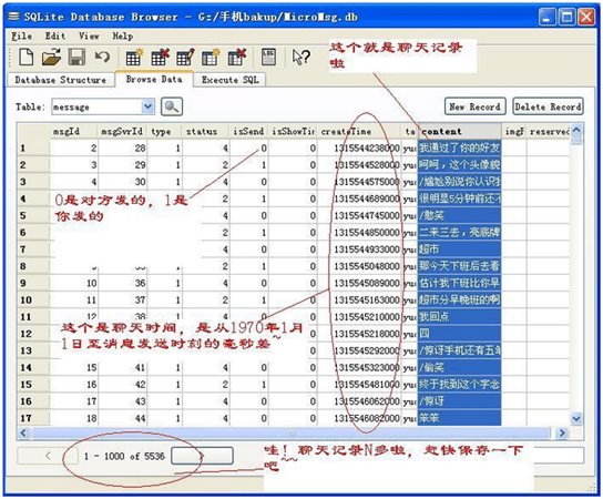 进入并找到MicroMsg.db文件,这是存储好友号码、昵称和聊天记录的数据库文件。全部拷贝到电脑里。如果想以文本形式打开导出微信文字聊天记录,可以下载SQLite相关软件打开导出。SQLite的具体使用方法是百度自己的~ ~ ~