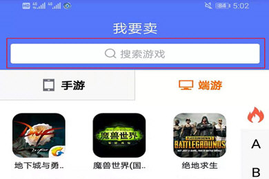 2、在售号界面选择游戏类型,主要包括客户端游戏和手游。如果用户在主页上没有找到对应的游戏类型,可以通过上方的搜索栏快速搜索。