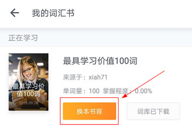 2、如果想重新背当前书,点击“学习”栏下的“更改记忆”,选择另一本书开始练习,这样就可以将当前书登记为“已完成”状态。