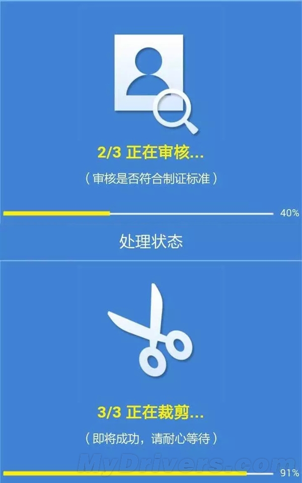 “幸福证照”虽然给了用户拍照的主动权,但证照严肃,公安部门对照片要求严格。幸福证照审核机制会对照片进行三轮审核:一轮机器审核和两轮人工审核,并会根据需要自动裁剪。
