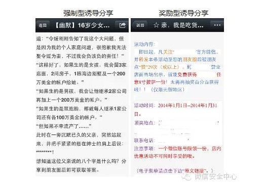 1.10.3胁迫、煽动用户分享:以夸张的文字胁迫、引诱用户分享。包括但不限于:“不转不是来自中国”、“请好心转发”、“转发后生命安全”、“疯转”、“必须转”。