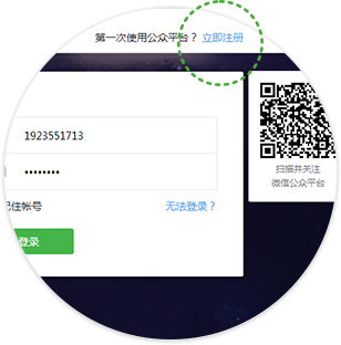 打开流程1。需要注册微信公众平台账号。你还没有微信官方账号?立即注册。