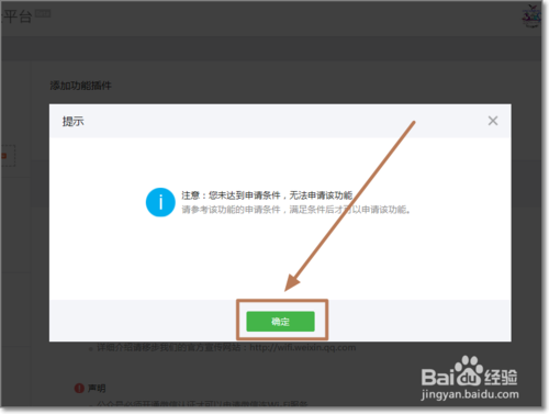 弹出微信Wi-Fi插件详细描述界面,介绍插件的功能、应用条件、语句等。点击“打开”按钮,申请打开插件。就像其他插件一样,只要启用,就可以返回平台使用。