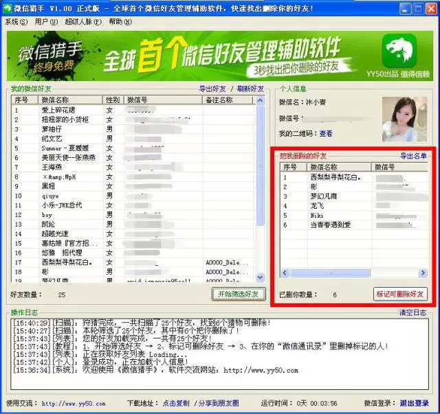 以上是用【微信猎人】了解删除好友的所有操作。简单不复杂的操作却有如此强大的功能,不得不感叹这款软件的魅力。