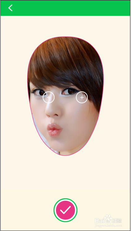 选好图片后,需要调整图片的位置和大小。可以用手指移动图片的位置,进行缩放。调整到合适的位置后,点击下面的勾选按钮,如下图所示。