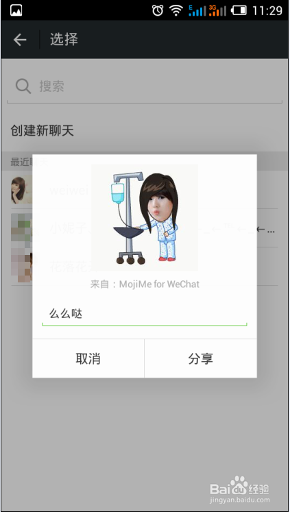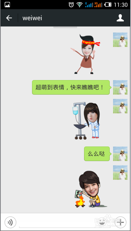 分享成功后,你自己制作的动画表情会通过聊天窗口发送到你朋友的微信。是不是很萌萌?感兴趣的朋友,赶紧来玩吧!