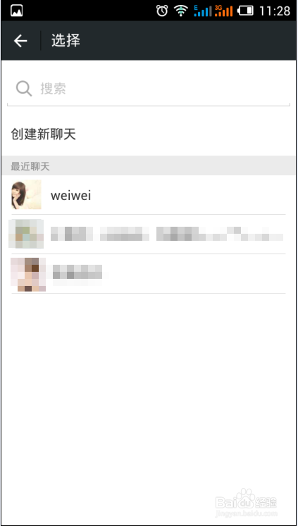 如果已经登录微信,会自动跳转到微信的最近聊天页面,选择一个好友发送。
