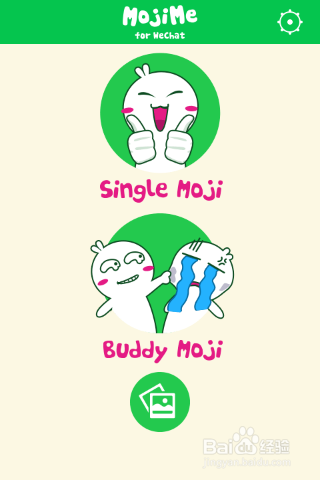 下载安装微信MojiMe后,打开微信Mojime。在主界面上,可以看到有两个选项,即上面的是单人动态表情,下面的是双人动态表情。这里我将演示上面的单人动态表情,如下图所示。