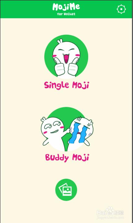 1.先下载一个微信MojiMe自定义表情制作工具到手机上。安装后打开手机里的“MojiMe”,先做一个“单动画表情”或者“双动画表情”。