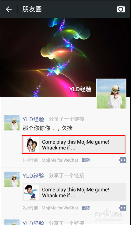 4.进入朋友圈后,可以看到你刚刚分享的MojiMe表情链接!然后直接点击打开链接。
