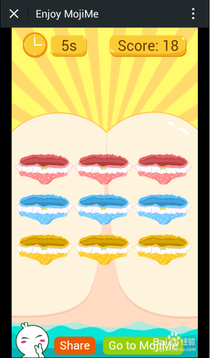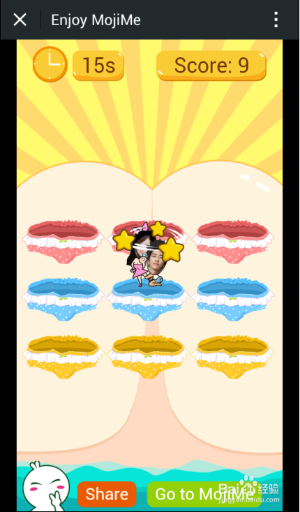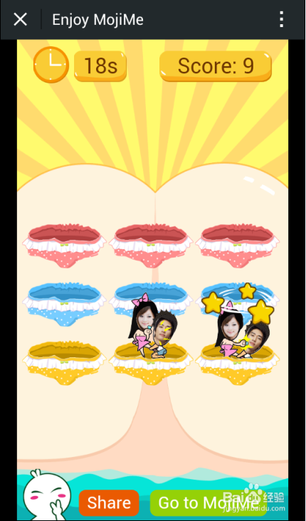 7.MojiMe游戏界面有九个洞,你的头像表情会随机跳出一个洞。