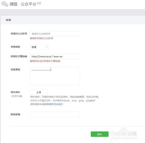 选择要提供的证据类型(比如我们要举报一个公共平台);