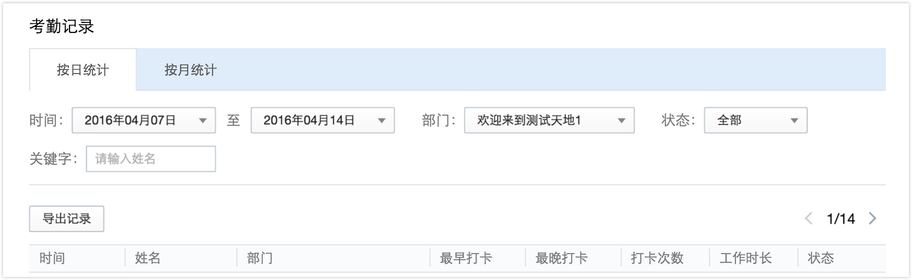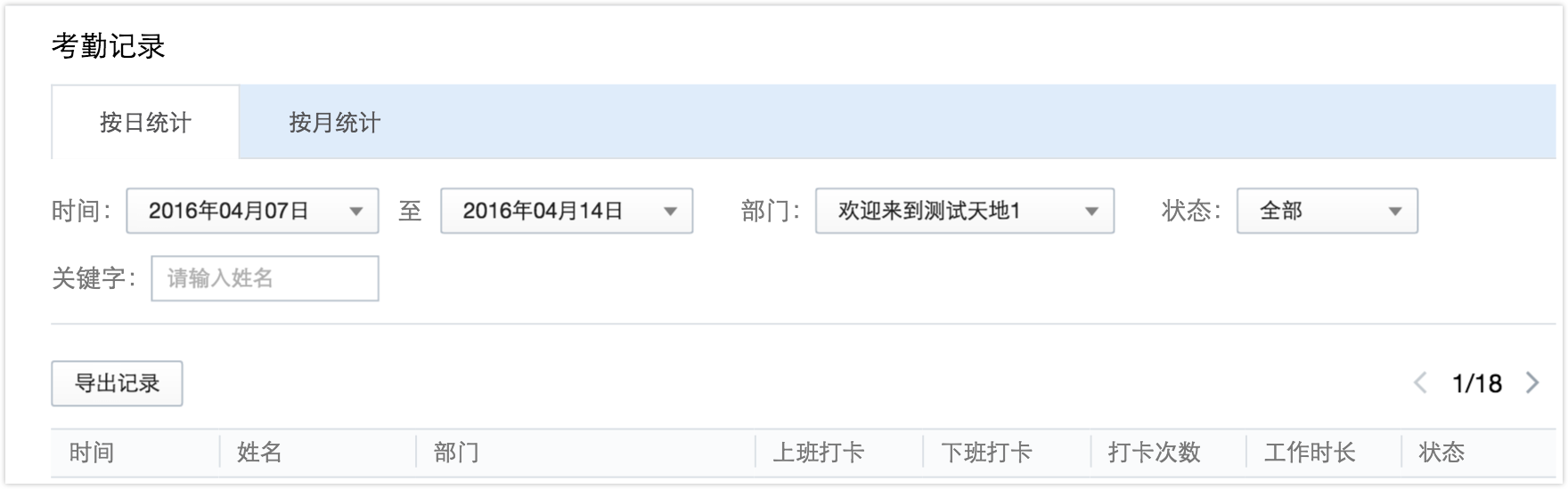 考勤数据分为“考勤统计”和“考勤记录”。