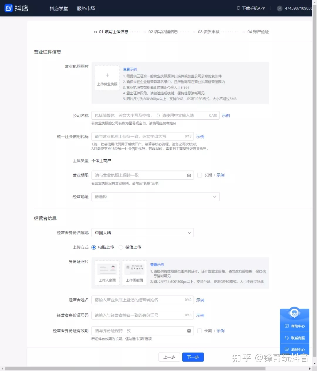 Tik Tok店开业流程认证主体填写页面: