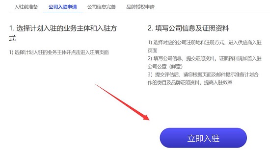 5.如果您选择了供应商入驻,可以点击“立即登录”