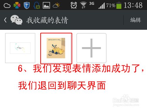 第六步,在我喜欢的表情编辑界面查看已经添加的表情,发现表情已经添加成功。我们回到聊天界面。