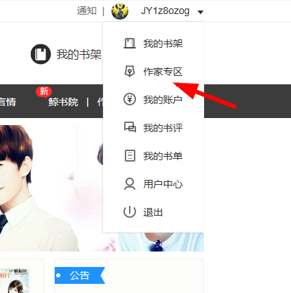 1.如果你想为你的小说签名,第一步是注册成为鲸读的作者,这需要我们点击下面的链接进入官网:点击这里,登录你的帐户,然后选择“作者中心”功能。