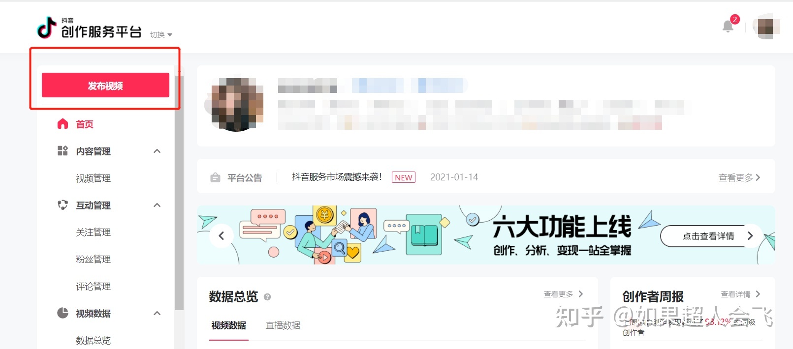 如果觉得在电脑上上传太麻烦,也可以在手机上上传,但是不能直接点击+号选择相册视频上传,这样会压缩视频。你可以点击Tik Tok右上角的三个栏——创作者服务中心——视频管理——点击上传。