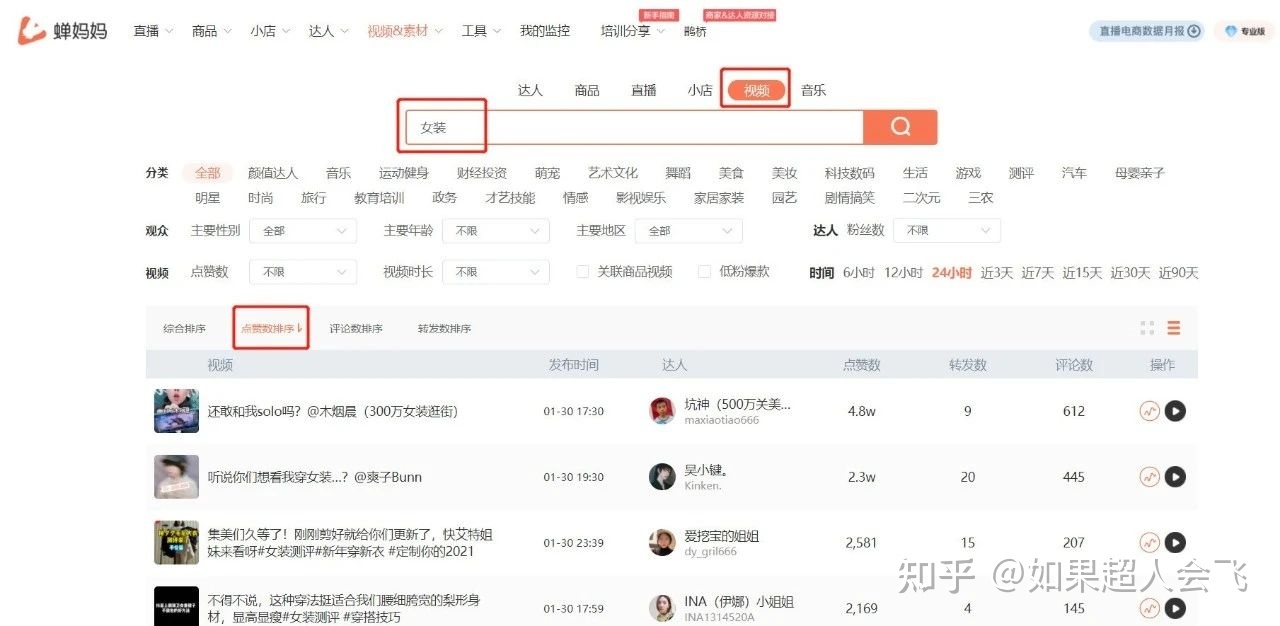 第二,通过数据分析软件找到。这里推荐几个常用的数据工具:禅妈、飞瓜数据、抖音大数据、卡斯数据。我们平时用Zen Mom,可以帮助我们快速找到同类的最新爆款视频和账号。记住:同龄人是最好的学习对象!