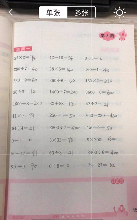 3. 数学题识别后,系统会自动判断题目的对错,并用红框标出错误的答案,大家可以直接批改。