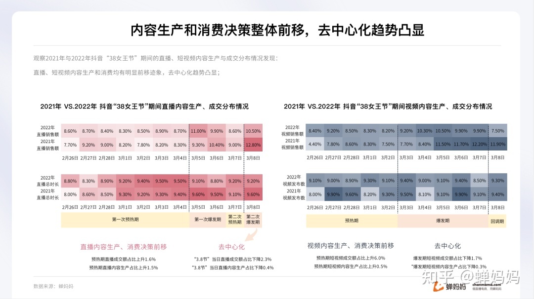 观察2022年和2023年Tik Tok“第38届女王日”期间直播和短视频内容的生产和交易分布,发现直播和短视频内容的生产和消费有明显前移的迹象,去中心化趋势突出。