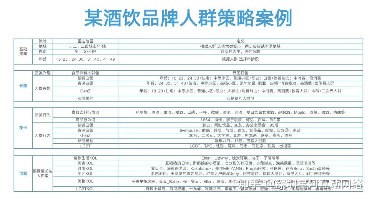 这个策略很有想象力,是短视频的内容场景逻辑。通过各种关键词(数百字)的组合,形成可量化的精准人群包。