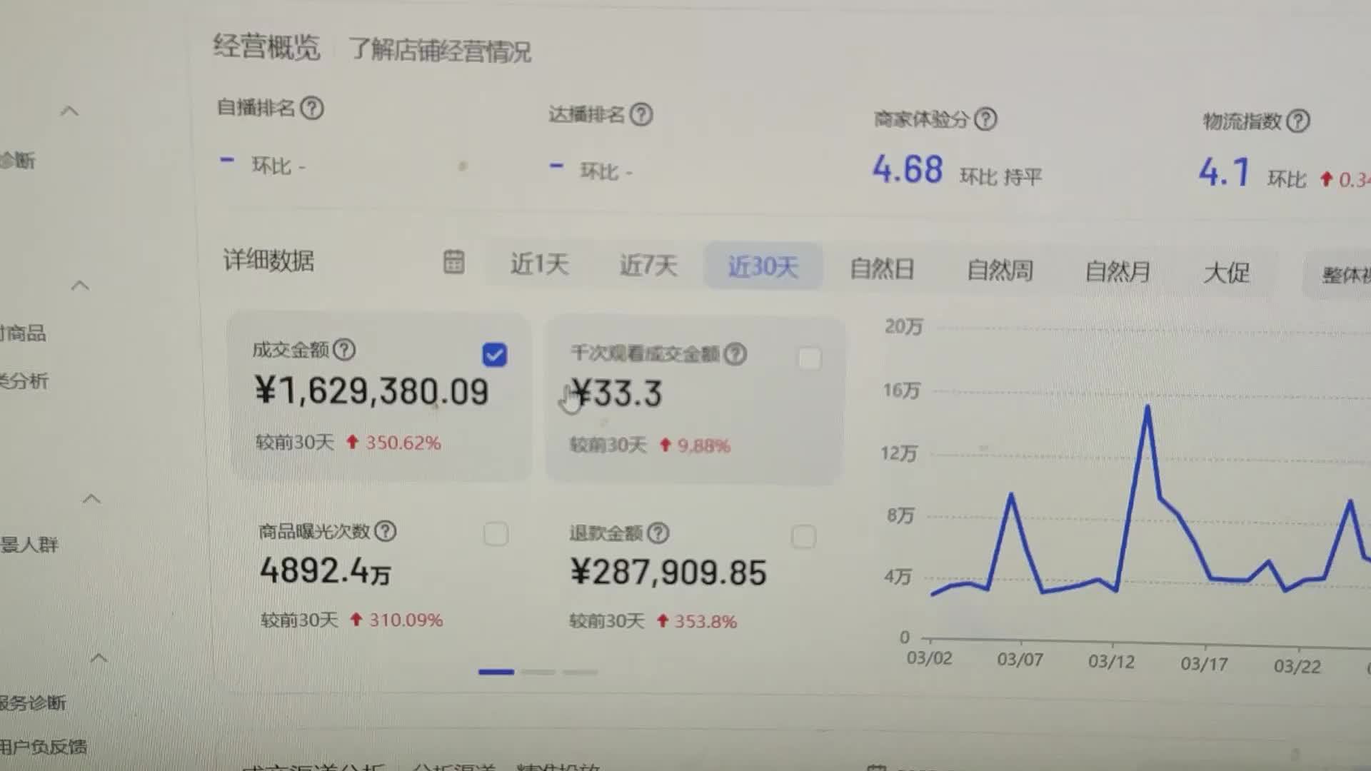 我们百货公司Tik Tok店开业一个多月,最近30天营业额5W,利润8000元左右。
