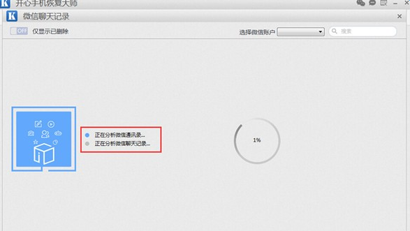 第四步:点击后,软件会对手机中的微信聊天记录进行扫描分析。分析时间取决于手机里的内容,一般5-10分钟。请耐心等待。