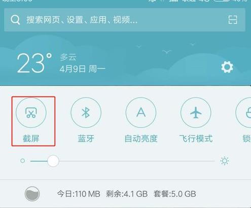 方法二:向下滑动任务栏,点击“截图”自定义截图