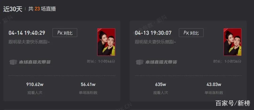 之后,刘畊宏开始专心做健身直播,单场直播从5万涨到10万、40万。根据新摇的统计,“刘畊宏”在4月13日至4月14日的两场直播中上涨了99.44万。