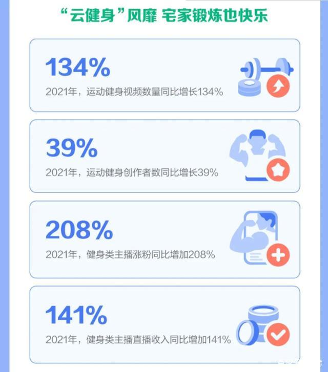 事实上,健身不仅在刘畊宏,而且在几个主流内容平台都正在成为热门内容。以Tik Tok为例,《Tik Tok体育健身报告》显示,到2022年12月7日,拥有超万粉丝的体育健身创作者超过6万人,2022年健身主播直播收入同比增长141%。