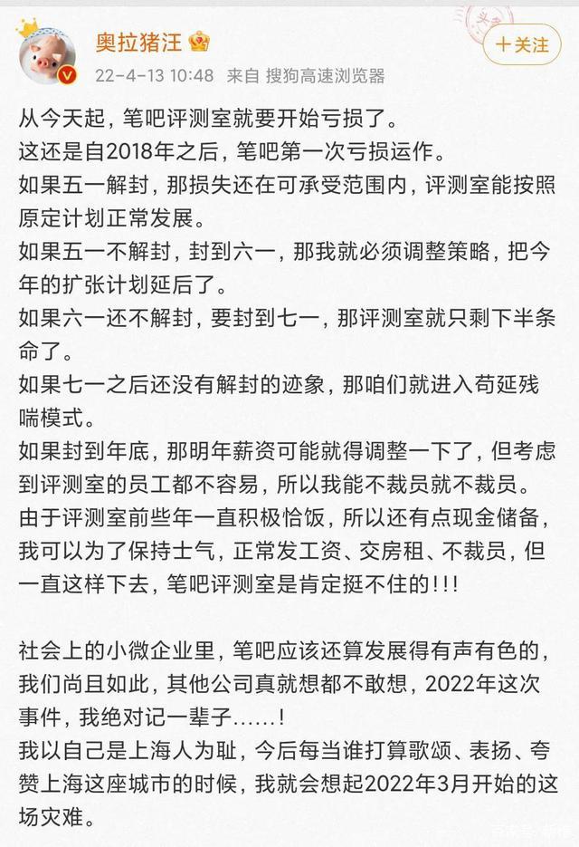 疫情的突然复发打击了很多人。上海一位数码博主撰文称,评估室正在经历2022年以来的首次亏损,如果7月1日前不封,评估室将只有半条命。