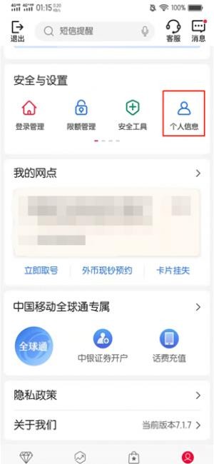 软件版本:国行7.1.7手机号已停用。可以先用明码登录手机银行,然后点击私人信息里的手机号。以vivo s9手机为例,国行使用手机号需要两步。具体操作如下:1第一步:点击私人信息。