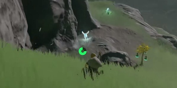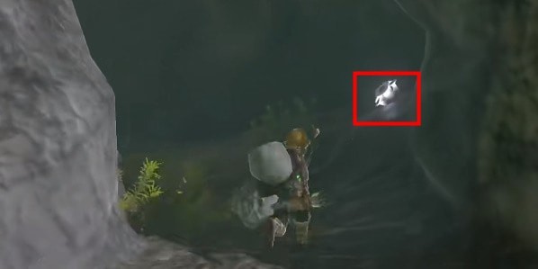 2.后面可以看到草地上的发光小精灵,跟着它找到附近的洞穴。