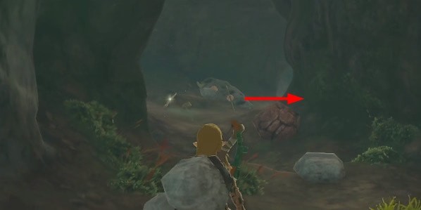 5.进入洞穴内部后,顺着下面的箭头,最后来到一块大石头前的房间。