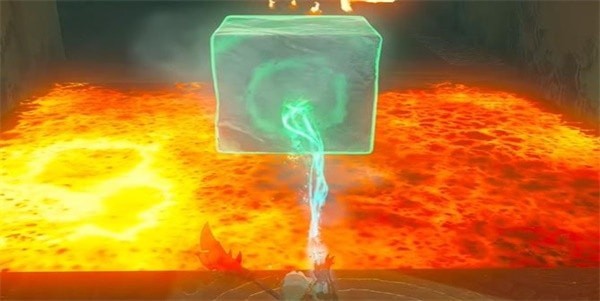 6.我们会继续用探杆器捡起石头挡住火焰,把落下的石头放进火焰里,铺出一条通往彼岸的路。