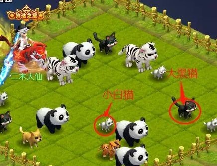②搞定了珍稀动物,包括那两个怪物,我们就进入猫舍。这时候要数一数小白猫和大黑猫有多少只,如下图:数7只猫(每个人都不一样,请自己数)。