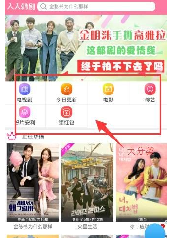 2、进入人人韩剧首页后,可以查看总分类栏目。