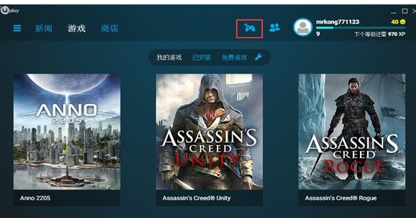 1.‖打开UPLAY,点击上方手柄小图标。