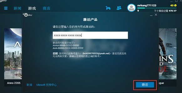 二。在中间的空白处,填写您的游戏激活码。